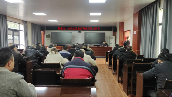 為進(jìn)一步落實(shí)市委市政府關(guān)于創(chuàng)建國家衛(wèi)生城市工作的總體部署要求,切實(shí)提高我市生活飲用水管理水平,1月5日新余市水利局邀我司聯(lián)合開展了城區(qū)二次供水設(shè)施規(guī)范化管理培訓(xùn)會。此次培訓(xùn)會由市水利局二級調(diào)研員胡振南主持,我司業(yè)務(wù)部李正明與技術(shù)部伍松代表授課,參會人員有新余市內(nèi)各學(xué)校、醫(yī)院、酒店、賓館以及小區(qū)物業(yè)等負(fù)責(zé)人。